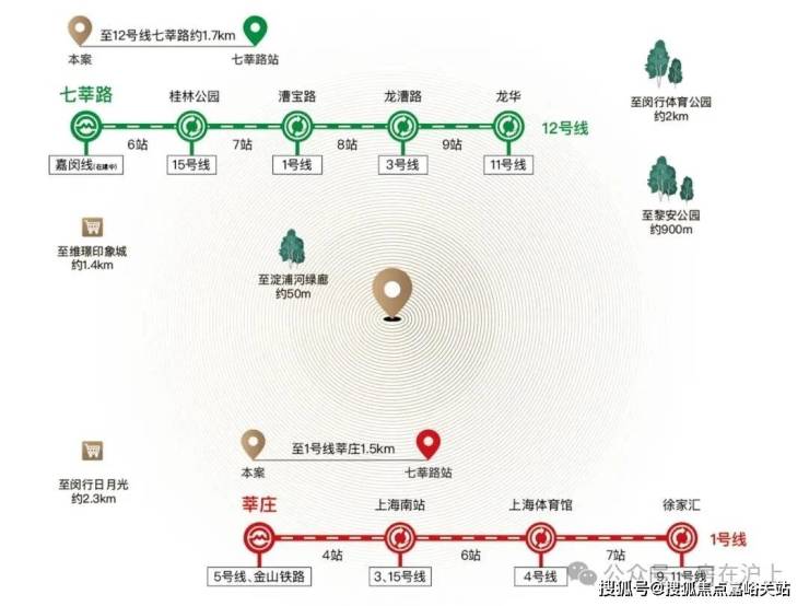 通过12号线,可直达漕河泾、徐汇滨江、苏河湾、北外滩、杨浦滨江、森兰、金桥等地