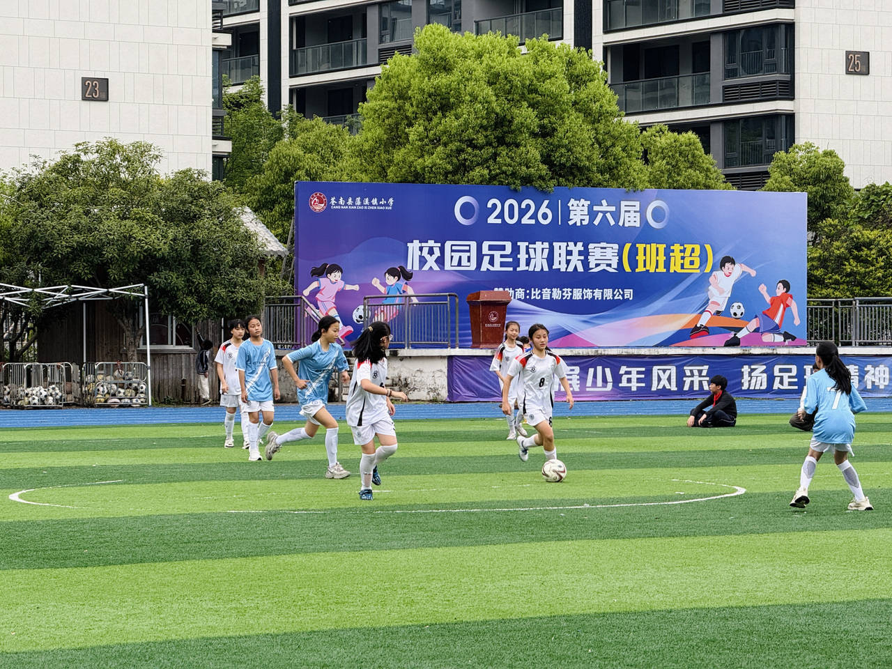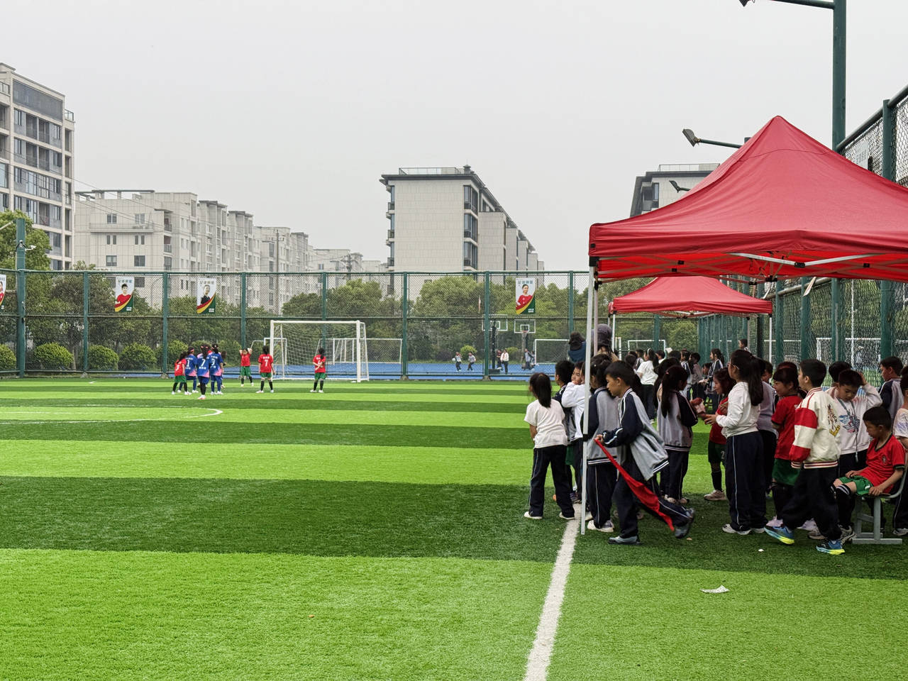 站在跑道上,左边是笼式足球场内传来的欢呼,右边是操场草坪上嘹亮的鼓劲,小朋友活力十足,听多了感觉自己都青春了不少。