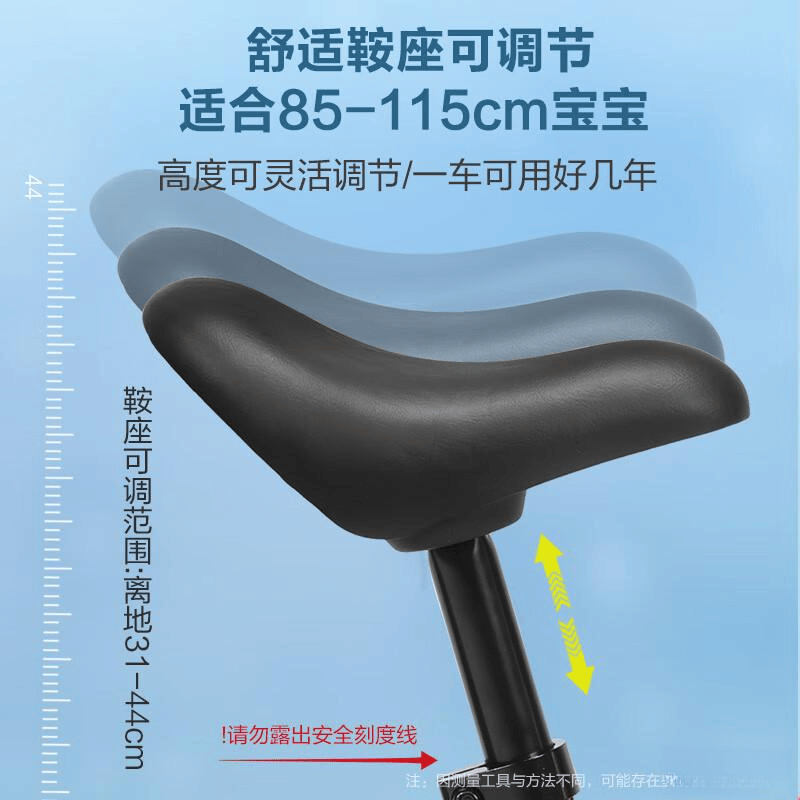 孩子的成长速度很快,但这款车却能跟得上他们的步伐。座椅高度可在31cm至44cm之间自由调节,适应不同身高阶段的需求。车把同样支持多档位调整,确保孩子始终保持舒适的骑行姿势。这意味着,从刚学会走路的小宝宝,到已经可以奔跑跳跃的活泼孩童,这辆车都能持续发挥作用。一车多用,不仅节省空间,更减少了频繁更换的麻烦。只要不超出安全刻度线,就能保证每一次骑行都处于最佳状态。