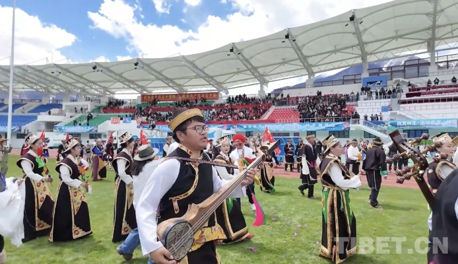 奖杯归属之外,闭幕式上体育竞技与民族文化的梦幻联动,成为全场难忘的“高光时刻”。来自巴宜区四镇三乡及两个街道办的600名群众,身着色彩斑斓的节日盛装齐聚球场中央,随着欢快的节奏响起,大家整齐划一、灵动欢快地跳起传统切巴博,尽显巴宜各族群众团结奋进、热情好客的精神风貌,让浓郁的民俗文化在现代体育赛场焕发出全新光彩。